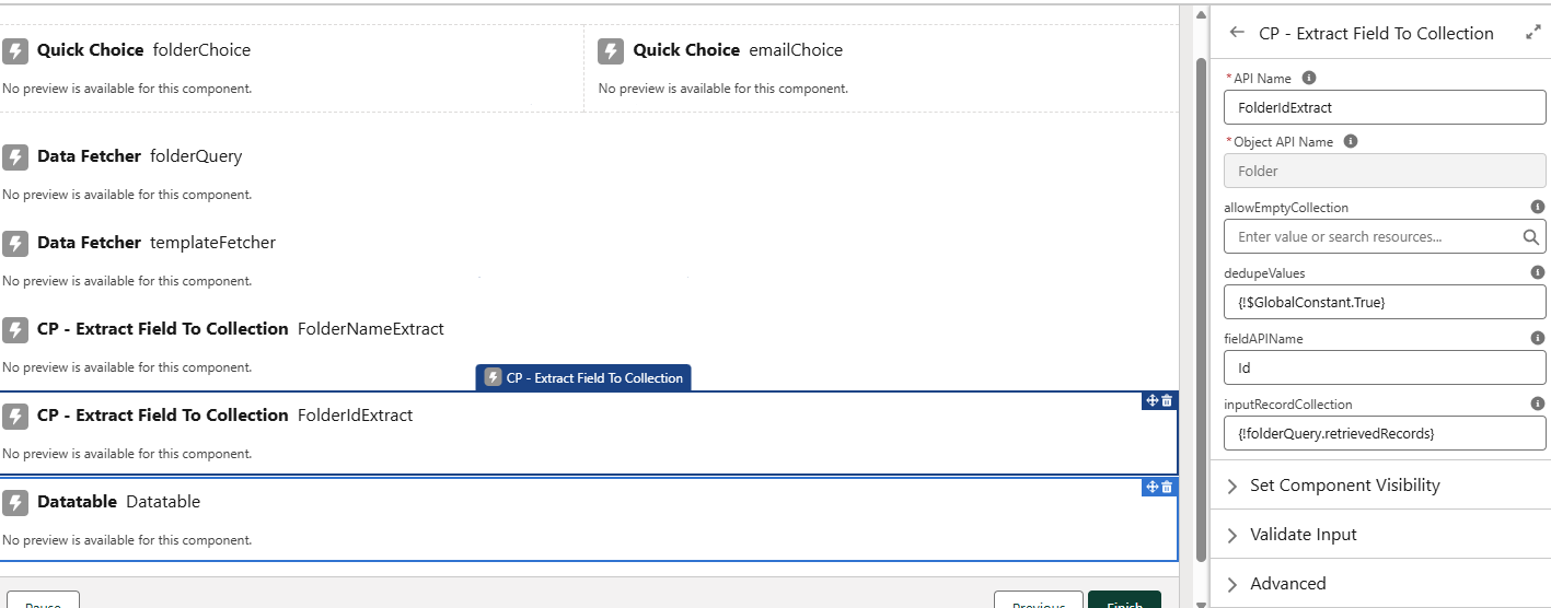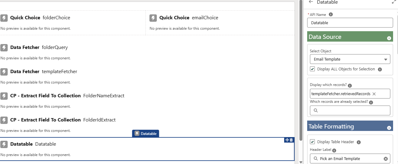 I am utilizing the UnofficalSF Flow Actions & Screen Components Base Packs for this flow. I also incorporate Reactive Collection Processors, DataFetcher and Datatable.