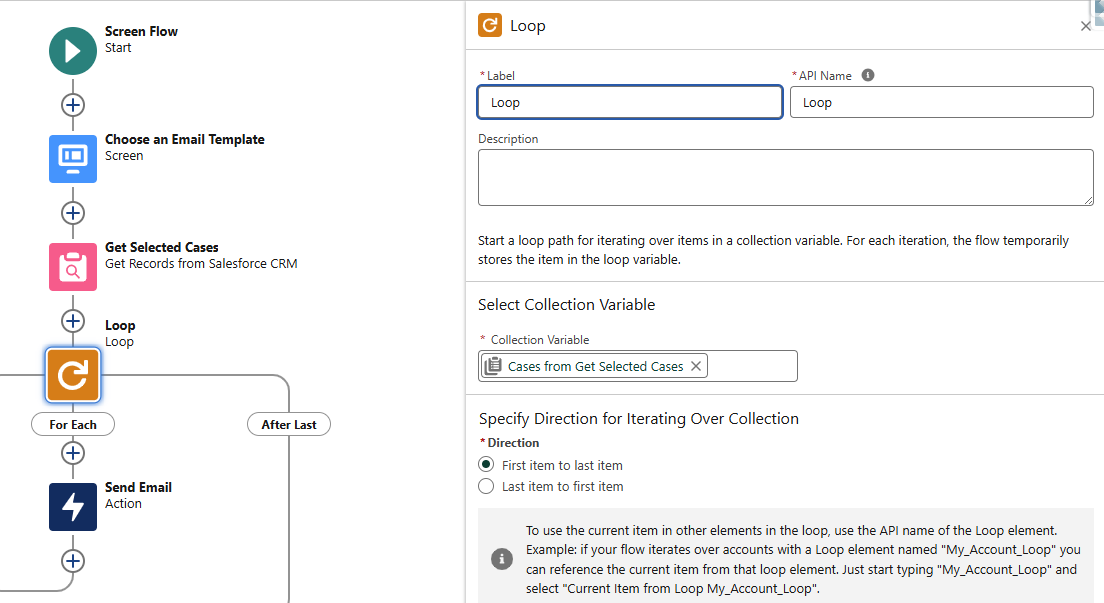 Since we are using this flow with a list of records, not just a single record, we need to get all the case records that the user has chosen from the list view. We do this with the text collection variable we created earlier, which we named ‘ids’. Just like how ‘recordId’ variables work, Salesforce will recognized these variables when they are named ‘ids’ and are part of a collection, to pass in the list of records to the flow.